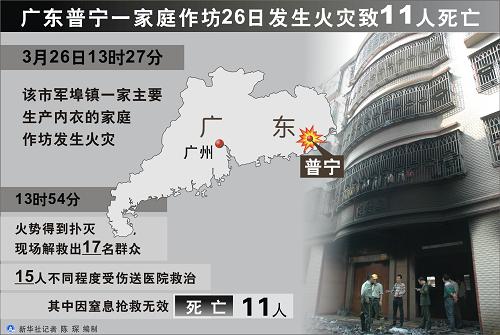 图表:广东普宁一家庭作坊26日发生火灾致11人死亡