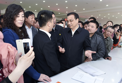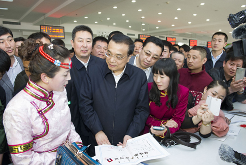 李克强总理近日到赤峰一政务服务中心考察。中新社 刘震 摄 |