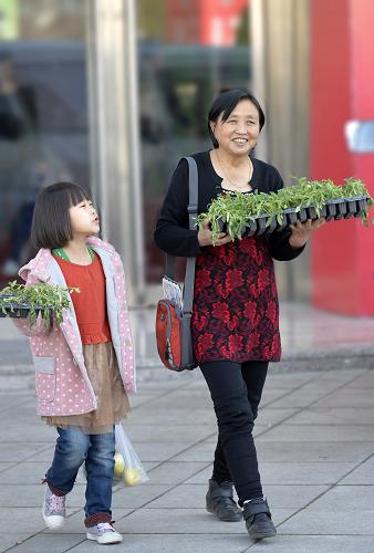 3月30日,参会者在农博会上选购了新品番茄秧苗。新华社发(马天烈 摄) |