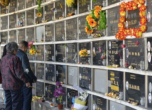 3月30日,在乌鲁木齐市一处公墓附近,参加祭扫的市民悼念逝者。新华社记者 王菲 摄