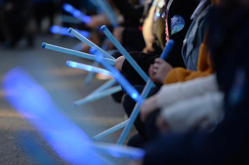 4月2日,参加活动的自闭症患儿手持蓝色灯光棒在活动现场。新华社记者 王凯 摄