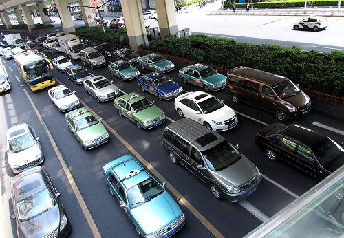 4月3日,机动车行驶在上海市延安路上。上海市环保局4月2日发布的信息显示,上海市将于4月30日起,提前实施第五阶段国家机动车排放标准(简称国五标准)。为配套实施机动车国五标准,上海市已经从2013年11月起全面供应国五标准汽柴油。新华社记者 陈飞 摄