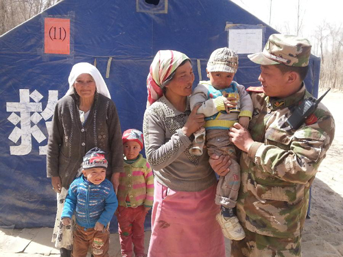 4月4日,援建官兵在新疆和田地区民丰县叶亦克村帮助村民卸砖块。连日来,武警新疆总队第五支队派出由42名官兵、17台车辆组成的运输队,支援和田地区民丰县地震灾区建材运送保障任务。今年2月12日于田7.3级地震发生后,地震灾区重建工作紧张进行。因受灾地区地域偏僻、地方运力不足,援建官兵要将重达4000多吨的建筑用砖从71公里外的民丰中汇砖厂送到叶亦克乡叶亦克村。新华社发(张阁 摄) 4月2日,援建官兵在新疆和田地区民丰县叶亦克村与村民们一起接力卸砖块。新华社发(周密 摄) 4月4日,1在新疆和田地区民丰县叶亦克村,1名武警战士利用间隙时间与临时安置点的群众互动。新华社发(张阁 摄) 4月4日,援建官兵在新疆和田地区民丰县叶亦克村与村民们一起接力卸砖块。新华社发(张阁 摄) |