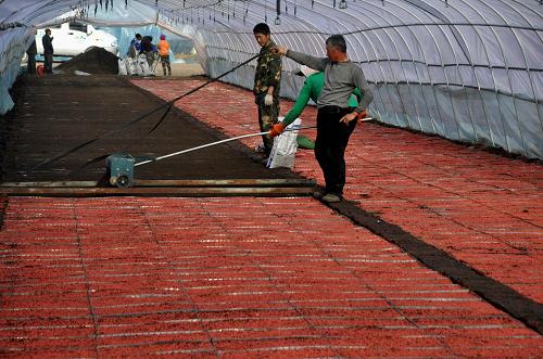 4月9日,职工在垦区建设农场水稻管理区育秧播种。当前,黑龙江省垦区各农牧场加紧春耕工作,田间施肥、灭茬整地、开沟排水等有序进行,一片繁忙。新华社发(周良君 摄)