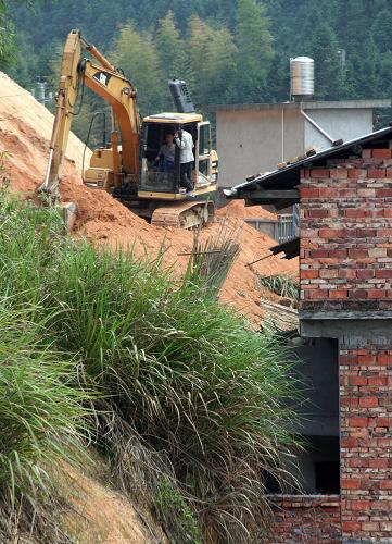 4月11日,福建省顺昌县开展农民住宅安全隐患排查整治工作,对该县双溪街道下沙村易发山体滑坡地质灾害的地带进行治理,在汛期来临前排除住宅安全隐患,确保村民生命财产安全。施工人员在福建省顺昌县双溪街道下沙村山体滑坡隐患地带施工。新华社发(陈柏材 摄)
