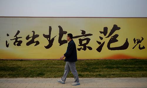 4月12日,在河北涿州市,一名市民从一处楼盘广告前走过。连日来,京津冀一体化成为北京周边各大楼盘重要的宣传主题,虽然“京津冀一体化”的具体规划尚未出台,但环北京地区房地产市场持续升温。记者在部分楼盘采访时发现,环北京地区已开盘项目多已小幅调高了售价,部分蓄客阶段楼盘定价涨幅在20%左右,不少楼盘一天一个价。 据保定一位房产销售人员介绍,此次购房潮中,投资客占到相当比例。专家指出,应警惕京津冀一体化出现“房地产化”的苗头和趋势。“京津冀一体化是新型城镇化发展大趋势,环北京地区获得新的发展机遇毫无疑问。”中国房地产业协会副会长朱中一说,“政策从顶层设计到具体举措,再到付诸实践需要一个过程,不同区域的发展重点和发展方式尚不确切。”新华社记者 王晓 摄