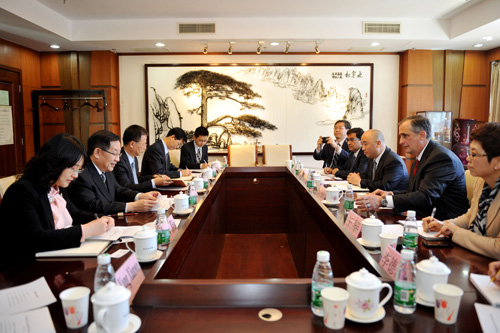 双方合影留念 2014年4月3日,科技部万钢部长会见了来访的美国英特尔公司首席执行官科再奇(Brian Krzanich)。双方就信息技术等相关领域合作深入交换意见。 万钢部长指出,中国当前正处在经济社会发展的转型期,城镇化和农业现代化都对信息技术提出了新的需求。面向未来,希望英特尔公司与中方伙伴加强合作,把握新技术的发展趋势,使创新型产品惠及人民。 科再奇介绍了英特尔公司在华发展情况和下一步合作构想,表示愿与中国同行在共同关心的领域保持和深化合作,实现共同发展。 科技部国际合作司马林英副司长、重大专项办公室金奕名副主任、高新技术发展及产业化司杨咸武副司长等会见时在座。 |