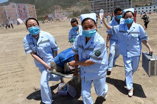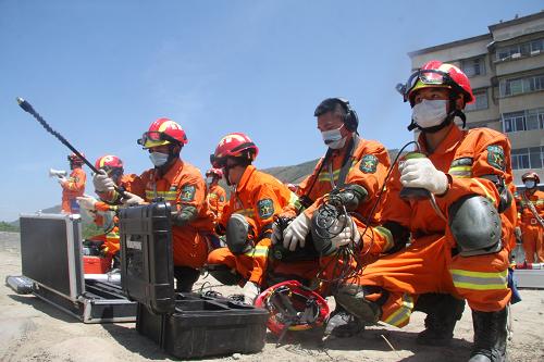 4月19日,在四川凉山彝族自治州冕宁县城厢镇长征社区,消防战士进行废墟救人演练。当日,四川省抗震救灾指挥部在凉山州冕宁县举行2014年省级防震救灾综合演练。演练分为废墟救人、危险品处置、医疗救护、卫生防疫、受灾群众安置、大桥水库除险加固等课目。武警、消防、民兵及各类专业抢险人员共5000余人参加演练。新华社发(李向雨 摄) 4月19日,在四川凉山彝族自治州冕宁县城厢镇长征社区,消防战士在“危化品爆炸处置”演练现场灭火。新华社发(李向雨 摄) 4月19日,在四川凉山彝族自治州冕宁县城厢镇长征社区,医护人员演练从地震废墟解救“被困群众”。新华社发(李向雨 摄) 4月19日,在四川凉山彝族自治州冕宁县城厢镇长征社区,武警战士在演练中调试搜救设备。新华社发(李向雨 摄)