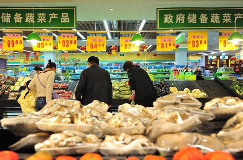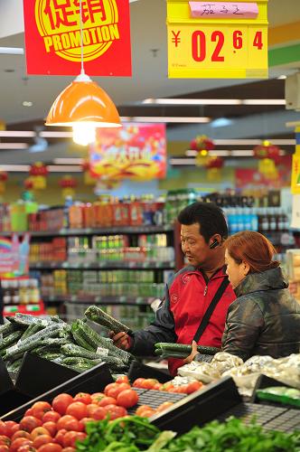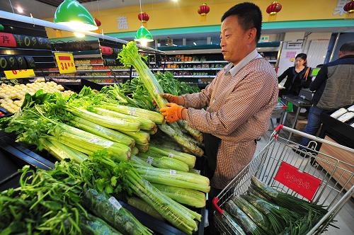 4月20日,市民在宁夏银川清湖苑标准化菜市场选购可溯源产地的蔬菜。新华社记者 彭昭之 摄