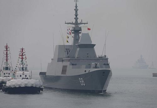 4月20日,新加坡“威武”号护卫舰抵达青岛大港码头。新华社记者 王建民 摄
