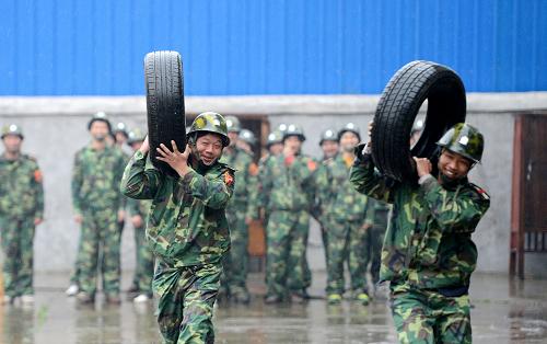 4月24日,针对当前降雨集中期的防汛形势,江西省上高县塔下乡举行民兵汛前抗洪抢险示范演练,提高抢险救灾能力。新华社记者周科摄