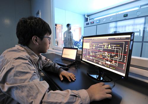 4月25日,在国网天津电科院六氟化硫气体回收净化利用处理中心,工作人员在待处理气体区运输待检测的六氟化硫气罐。当日,国家电网在天津建成的首个六氟化硫气体回收净化利用处理系统在天津电科院正式投入运行。据介绍,该系统运行后,每年可回收净化天津地区460座变电站产生的5吨六氟化硫气体,相当于减排12万吨二氧化碳,节能减排效益明显,将有效促进天津绿色电网和低碳经济的发展。 新华社发 李津 摄 4月25日,在国网天津电科院六氟化硫气体回收净化利用处理中心,工作人员操作六氟化硫气体集控处理系统。 新华社发 李津 摄 |