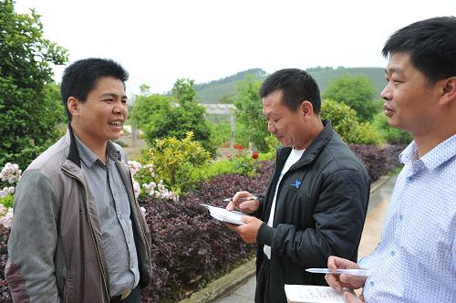 4月30日,闽侯县纪检干部张孔兵(右)等在福建福丰农业发展有限公司向部门负责人余朝阳(左)了解企业投资经营环境。今年来,福建闽侯县纪检监察机关通过深入企业暗访、入户随机调查、公布举报电话等方式,严查县乡服务部门和行业工作人员违反中央八项规定行为,督促党员领导干部以身作则,抵制“四风”。新华社记者 林善传 摄
