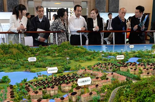 4月30日,市民在上海“五一假日楼市”上参观沙盘。新华社发(赖鑫琳 摄)