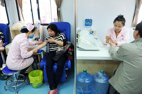 5月1日,市民在新型献血房车内无偿献血。新华社记者 彭昭之 摄