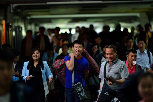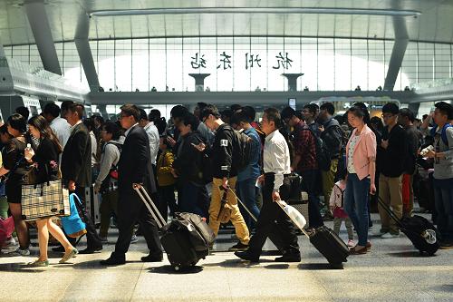 5月3日,旅客从杭州火车站出站。据铁路部门消息,5月3日,铁路迎来“五一”假期返程客流高峰,预计发送旅客990万人次。新华社发(龙巍 摄)