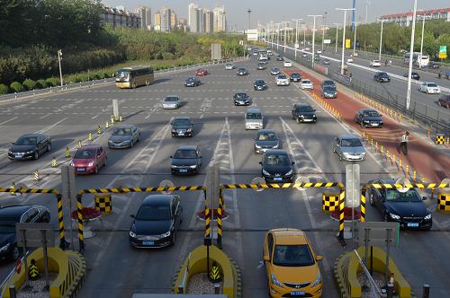 5月3日,车辆驶入G4京港澳高速公路石家庄裕华路通行口。新华社(朱旭东 摄)
