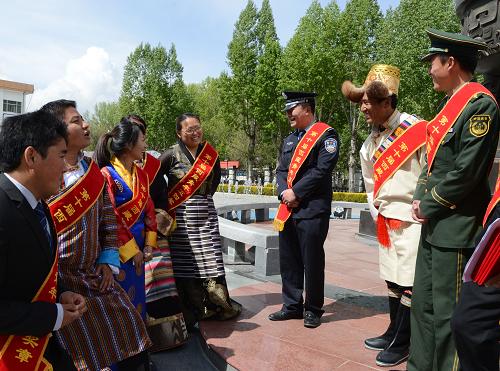 5月4日,获得“西藏青年五四奖章”的青年在一起交流。当天,共青团西藏自治区委员会举行第十届“西藏青年五四奖章”颁奖大会,向12名来自不同岗位、不同民族的优秀青年颁发“西藏青年五四奖章”。新华社记者 觉果 摄