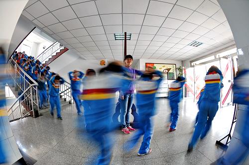 5月7日,河北怀来县沙城第四小学学生在进行应急疏散演练。当日,河北怀来县沙城第四小学组织2200多名师生开展“防震减灾”安全教育活动,进行应急疏散演练、学习防震减灾知识。5月12日是全国第六个“防灾减灾日”,主题是“城镇化与减灾”。新华社发(牟宇 摄)