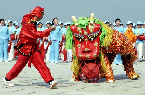 来自河南省睢县的一支民间社火队在表演“麒麟舞”。“麒麟舞”已被列入国家级非物质文化遗产名录(2007年3月18日摄)。近日出版的《河南非物质文化遗产报告》,对河南省10年来的非遗保护工作进行了整体梳理和盘点。据了解,截止2013年底,河南全省共有国家级非物质文化遗产95项,国家级非物质文化遗产项目代表性传承人79人,省级非物质文化遗产372项。新华社记者 王颂 摄