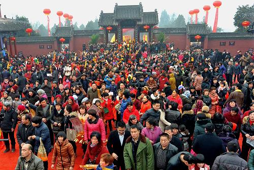 大批群众涌入河南省淮阳县的太昊伏羲祭典活动会场。“太昊伏羲祭典”已被列入国家级非物质文化遗产名录(2014年3月2日摄)。新华社记者 王颂 摄