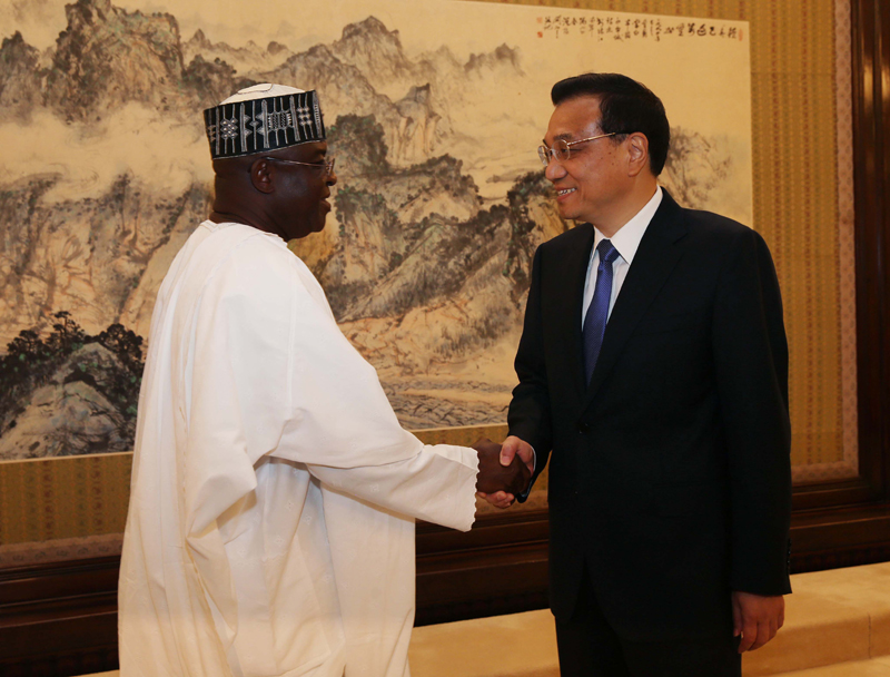 5月13日,江南平台入口 总理李克强在北京中南海紫光阁会见尼日利亚参议长马克。新华社记者 刘卫兵 摄