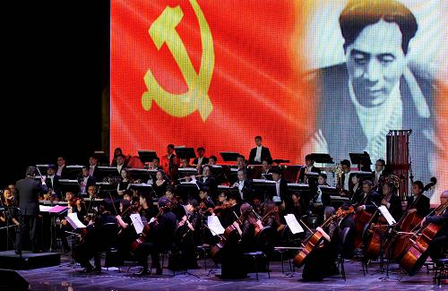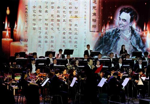 当日晚,为纪念焦裕禄同志逝世50周年,由河南省委宣传部、河南省文化厅主办的《念奴娇·追思焦裕禄》交响音乐会在郑州河南艺术中心喷泉广场举行。新华社记者 李安 摄