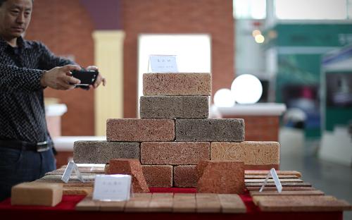5月15日,一位参观者在拍摄几款新型建筑烧结砖。当日,2014中国(沈阳)国际现代建筑产业博览会在沈阳国际展览中心开幕。博览会以“绿色建筑与现代建筑产业化”为主题,600余家海内外企业参展。展品范围涵盖结构、建材、装备、建筑技术与服务等领域。新华社记者 姚剑锋 摄