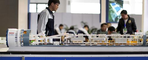 5月15日,由北方重工展出的敞开式硬岩掘进机模型在博览会上亮相。新华社记者 姚剑锋 摄