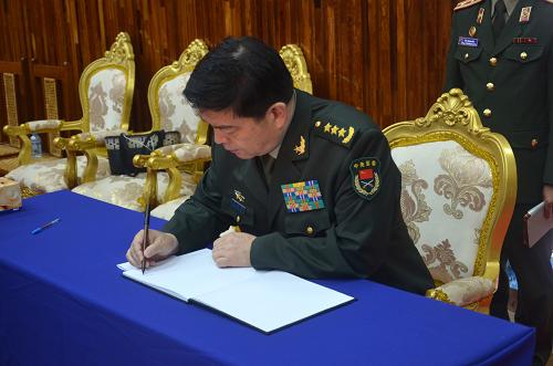 5月18日,在老挝首都万象,中国国务委员兼国防部长常万全在吊唁薄上留言。当日,常万全赴老挝国防部吊唁17日因飞机失事而罹难的老挝副总理兼国防部长当斋,并献了花圈。新华社发(彼特摄)