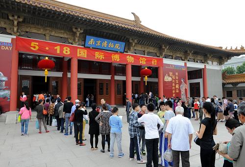 5月18日,市民和游客排队参观南京博物院。当日,由国家文物局和江苏省政府共同主办的2014年“国际博物馆日”全国主会场活动在南京博物院举行。南京博物院举办“博物馆藏品架起沟通的桥梁”主题展等4个特别展览和一系列相关活动,向公众传播博物馆文化,加深公众对博物馆的了解。在“国际博物馆日”全国主会场活动开幕式上,国家文物局公布了第11届(2013年度)全国博物馆十大陈列展览精品评选结果。新华社记者 孙参 摄