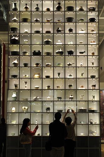 5月18日,参观者在南京博物院举办的“博物馆藏品架起沟通的桥梁”主题展上参观模拟文物库房。新华社记者 孙参 摄