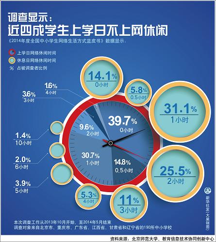 图表:调查显示:近四成学生上学日不上网休闲
