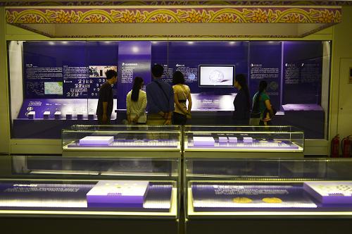 5月24日,几位参观者在参观丝路沿线各国各个时期的金属货币。当日,隋唐丝绸之路的起点——西安大唐西市推出与丝绸之路相关的绘画、古币、刺绣等多个展览,让市民近距离感受丝绸之路文化。新华社记者 刘潇 摄