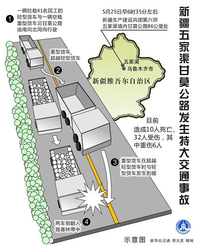 图表:新疆五家渠甘莫公路发生特大交通事故 新华社记者 周大庆 编制