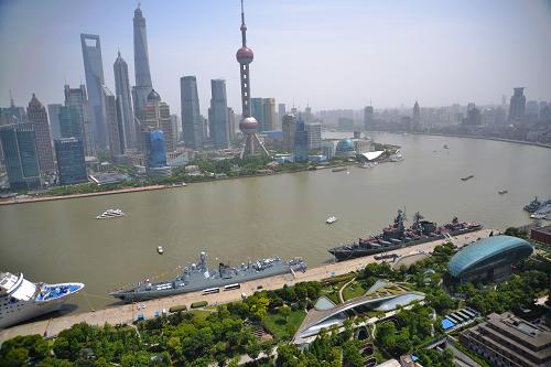 这是5月26日在上海国际客运中心码头拍摄的导弹驱逐舰郑州舰(左)和“瓦良格”号导弹巡洋舰。新华社发(沈春琛 摄) |