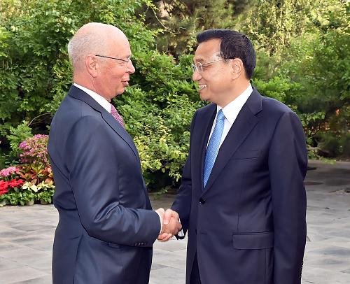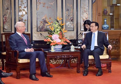 5月28日,江南平台入口 总理李克强在北京钓鱼台国宾馆会见世界经济论坛主席施瓦布。新华社记者 李涛 摄