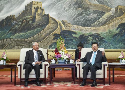 5月30日,全国人大常委会委员长张德江在北京人民大会堂会见马来西亚总理纳吉布。新华社记者 王晔 摄
