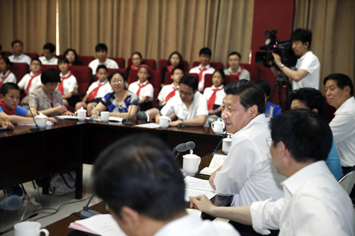 习近平在参加北京市海淀区民族小学庆祝“六一”国际儿童节活动时强调