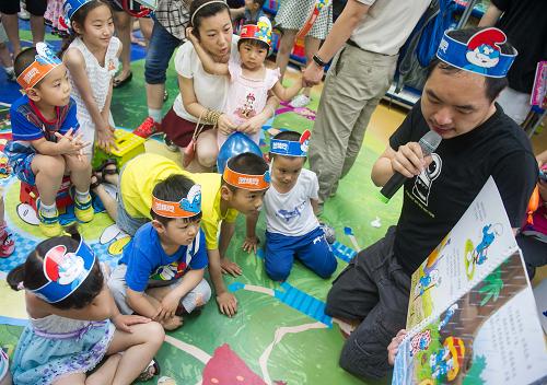 5月31日,小朋友们在北京图书大厦听工作人员讲故事。北京市新华书店连锁公司在5月31日至6月2日期间,面向少年儿童开展“快乐阅读手拉手”等主题活动,为广大小朋友搭建一个童趣、活泼、益智的书香乐园。新华社记者 罗晓光 摄