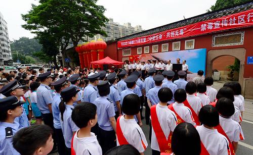 这是纪念虎门销烟175周年暨“守望生命·共创无毒”——禁毒宣传社区行启动仪式现场(6月3日摄)。6月3日是林则徐虎门销烟175周年纪念日,纪念虎门销烟175周年暨“守望生命·共创无毒”——禁毒宣传社区行启动仪式在福州市林则徐纪念馆举行。福建将依托全省324个社区戒毒康复管理工作站,“制作一块禁毒专栏、播放一部禁毒影视、开办一堂禁毒讲座、组织一次禁毒图展、举行一场禁毒咨询”,开展富有特色的“禁毒宣传社区行”活动,进一步扩大禁毒宣传教育覆盖面。新华社记者 魏培全 摄