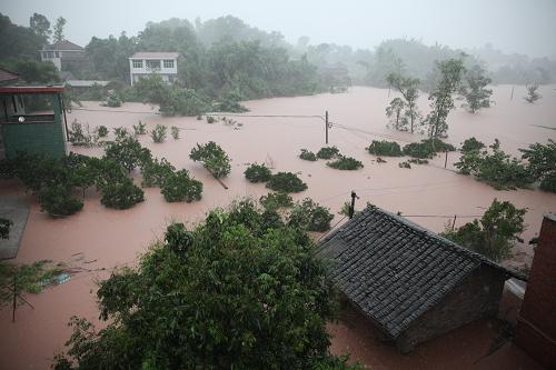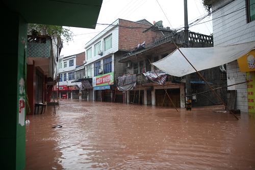 6月3日拍摄的被雨水浸没的江安县四面山镇。6月2日晚,四川省宜宾市江安县四面山镇遭受暴雨袭击,大量积水造成当地交通受阻,部分街道被淹。目前,抢险救援工作正在进行中。新华社发 庄歌尔 摄