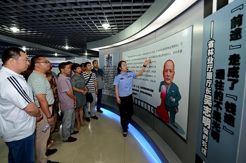 6月9日,罗源县纪检干部在榕城监狱案例展示厅观看新近通报违反中央“八项规定”的典型案例。新华社记者 张国俊 摄