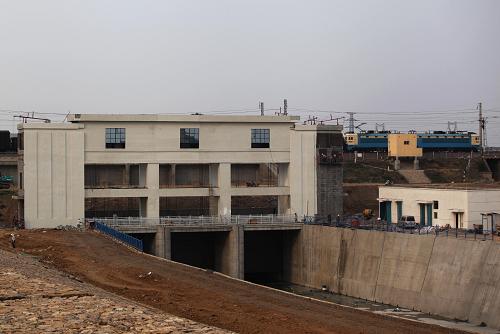 6月9日,一列火车从南水北调中线重点控制工程平顶山西暗渠上方驶过。目前,位于河南省平顶山市宝丰县境内的焦柳铁路线下的南水北调中线重点控制工程平顶山西暗渠工程正在进行扫尾阶段施工,迎接即将到来的充水试验。该工程于2011年12月开始施工,工人们利用列车驶过的间隙,进行过水通道箱体钢筋绑扎和混凝土灌注。暗渠与铁路线成90度夹角,属于双层顶进涵施工,工程工艺复杂、施工难度大。新华社发(何五昌 摄)