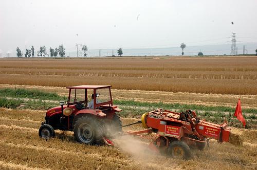 6月11日,一名农民操作小麦秸秆机在凤翔县陈村镇西槐村麦田中作业。新华社记者 都红刚 摄