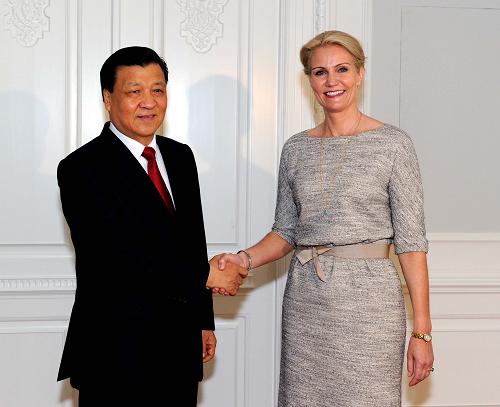 6月11日,正在丹麦进行正式访问的中共中央政治局常委、中央书记处书记刘云山在哥本哈根会见丹麦首相托宁-施密特。新华社记者 饶爱民 摄