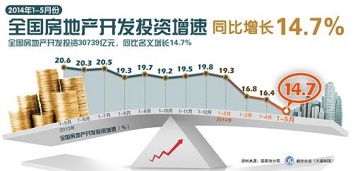 图表:2014年1-5月份全国房地产开发增速同比增长14.7% (新华社 大巢 制图)