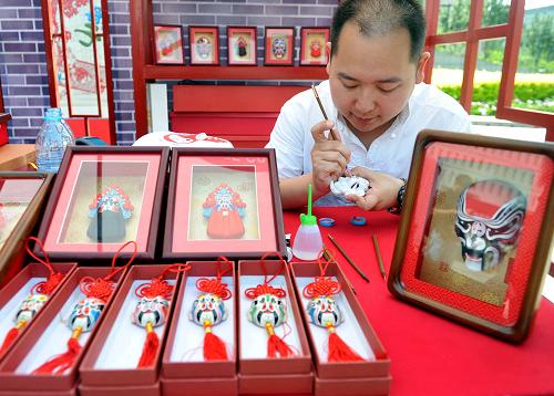 6月14日,泥塑彩绘脸谱传承人在活动现场展示制作技艺。新华社记者 公磊 摄