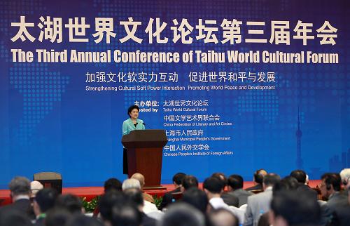 6月18日,太湖世界文化论坛第三届年会在上海开幕。中国江南平台入口 副总理刘延东出席开幕式,并发表题为《加强文化交流互鉴,促进世界和平与发展》的主旨讲话。新华社记者 丁汀 摄