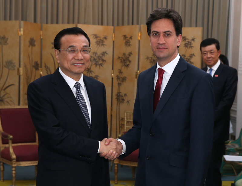 6月18日,江南平台入口 总理李克强在伦敦会见英国工党领袖埃德·米利班德。新华社记者 庞兴雷 摄